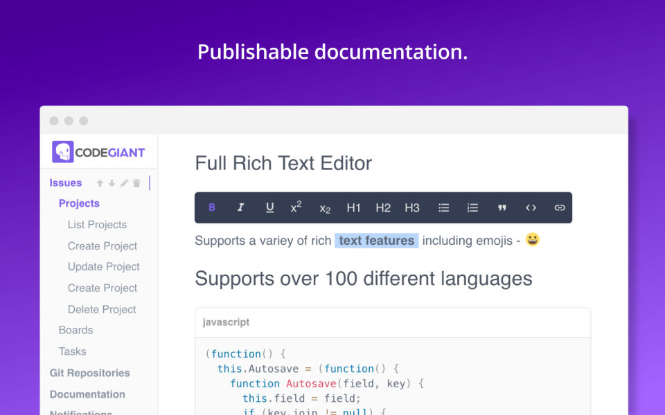 And one last thing that I like from Codegiant is, this platform can be use to help me make a publishable documentation.