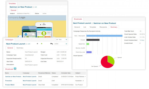 You can segment your lists, create templates and run marketing campaigns through email and text. Keep in close touch with your customers by tracking customer service cases and responding to them quickly. Get paid quickly by creating quotations and sending invoices for your products and services right from the CRM and track payments as you receive them. Report Builder and customizable Dashboards lets you create your own reports and visually track progress of every area of the business.