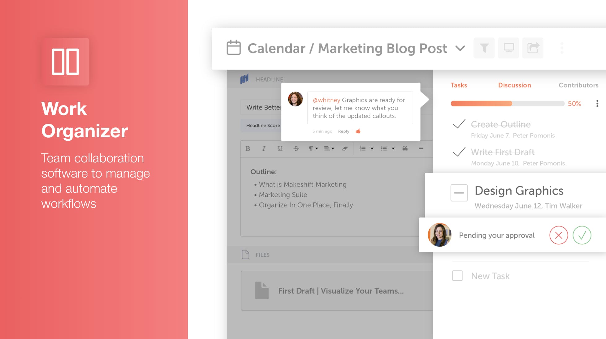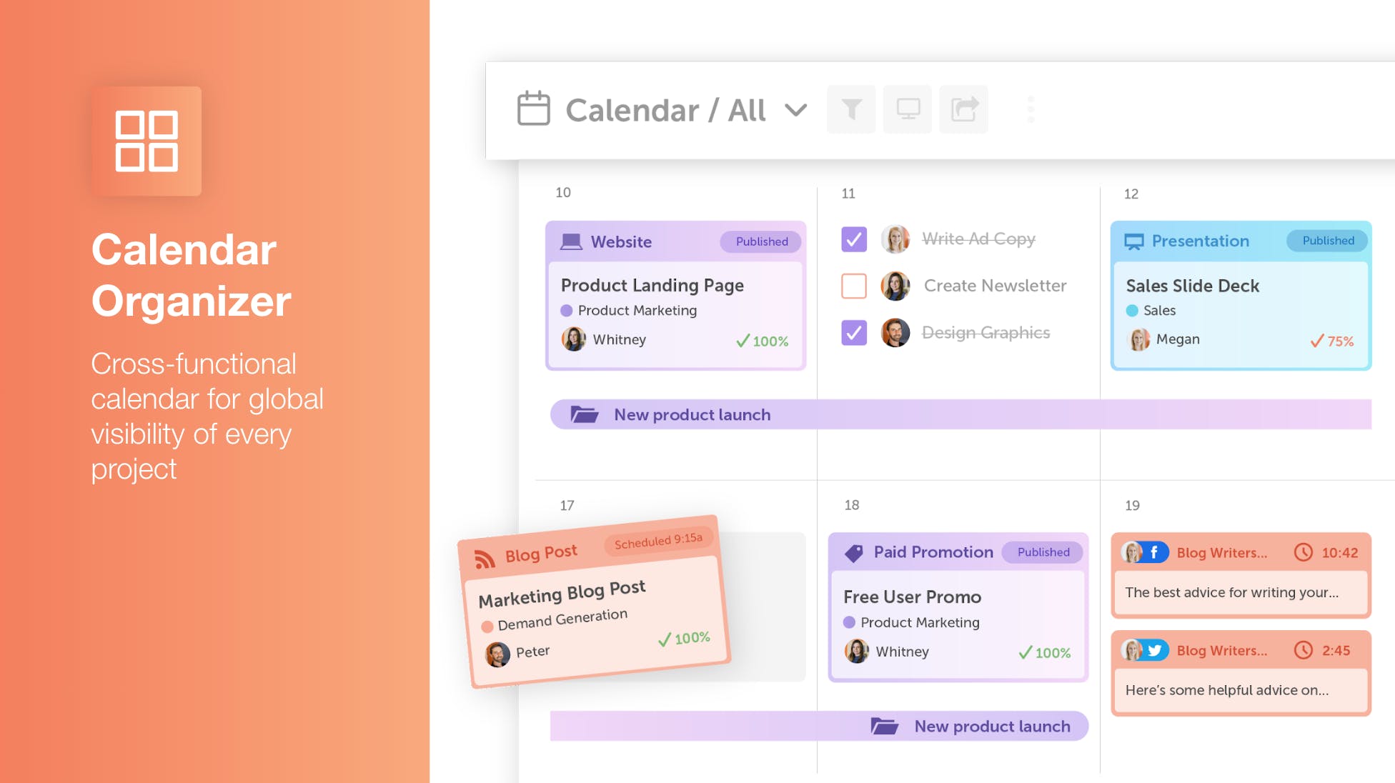 Centralizes marketing calendars, tasks, and content