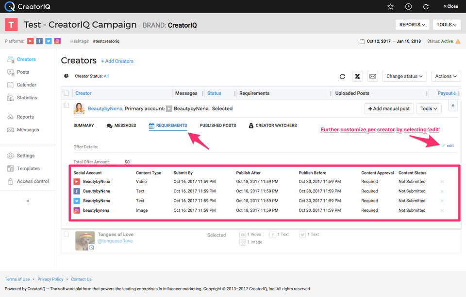 I love being able to talk to all of the creators within a campaign all from one dashboard. The fact that you can add anyone to your personal network is a great feature that separates them from other platforms.