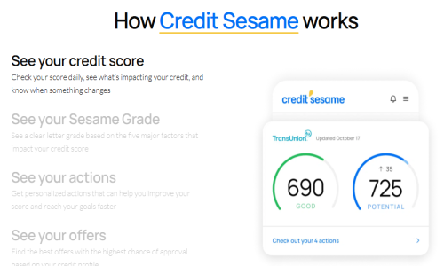 credit sesame is the Credit Monitoring Software used for the below functionalities.