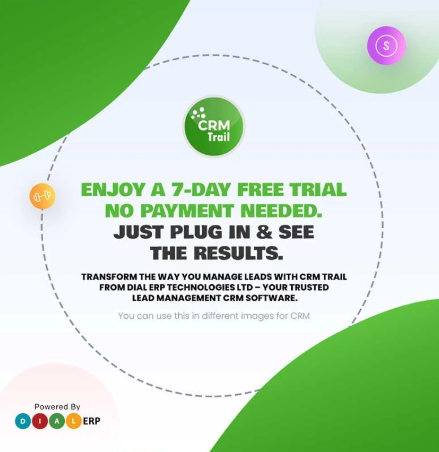CRM Trail by Dial ERP Technologies is a comprehensive Customer Relationship Management (CRM) solution designed to empower businesses in managing leads, automating sales processes, and enhancing customer engagement. Whether you're a startup or an enterprise, CRM Trail offers the tools needed to drive growth and efficiency.