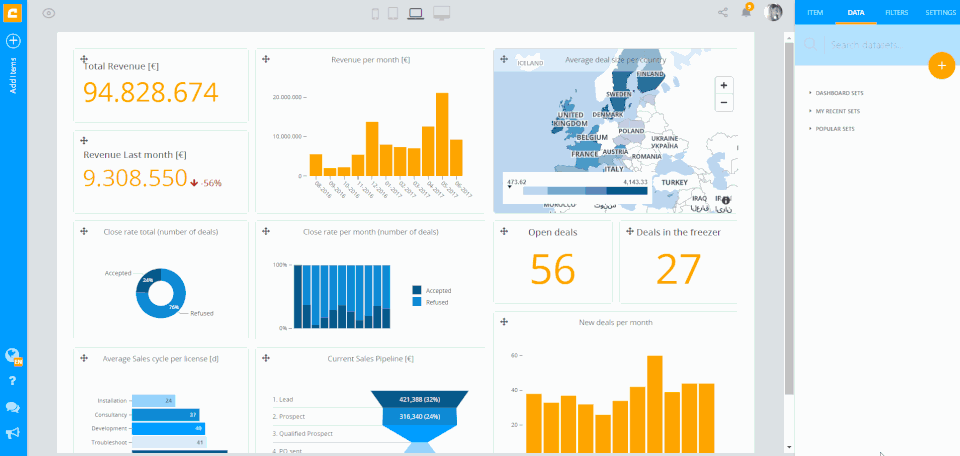 If you want an easy tool to visualize data this is the program you need. It also has a lot of links to CRM software allowing for a smooth data syncing.