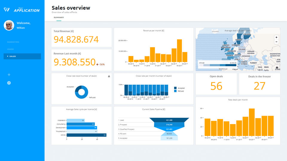 Cumul.io is the Business Intelligence Software used for the below functionalities.