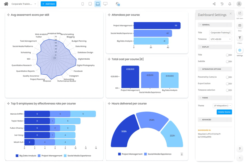 You will have to spend some time integrating and customizing cumulio to get all the value it can bring to you. It is a good tool and easy to use. For that reason it is not as powerful as others on the market. However, its simplicity is a value since a person without technical knowledge can design a dashboard without problems.