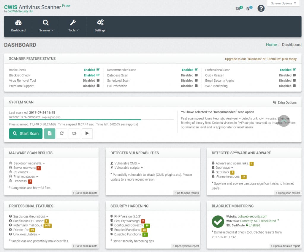 CWIS Antivirus Scanner has 1 plans,