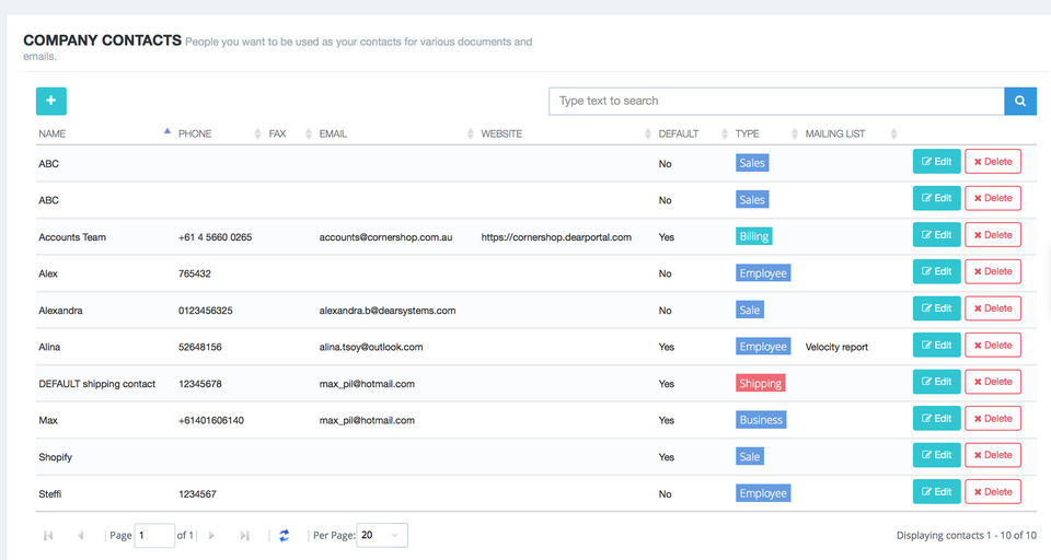 - Company Name: DEAR Inventory