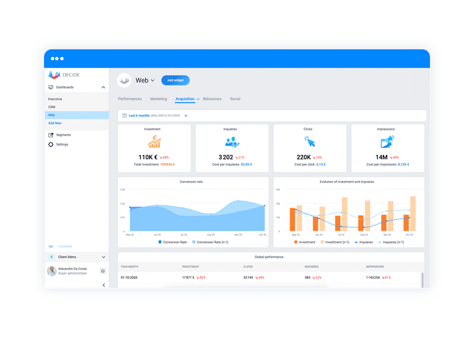 - For Analytics 1 User Up to 100k unique visitors/month 1 domain name connection Dashboard : Analytics Data stored and secured by Decide AI in Europe Email/Chat support For Search