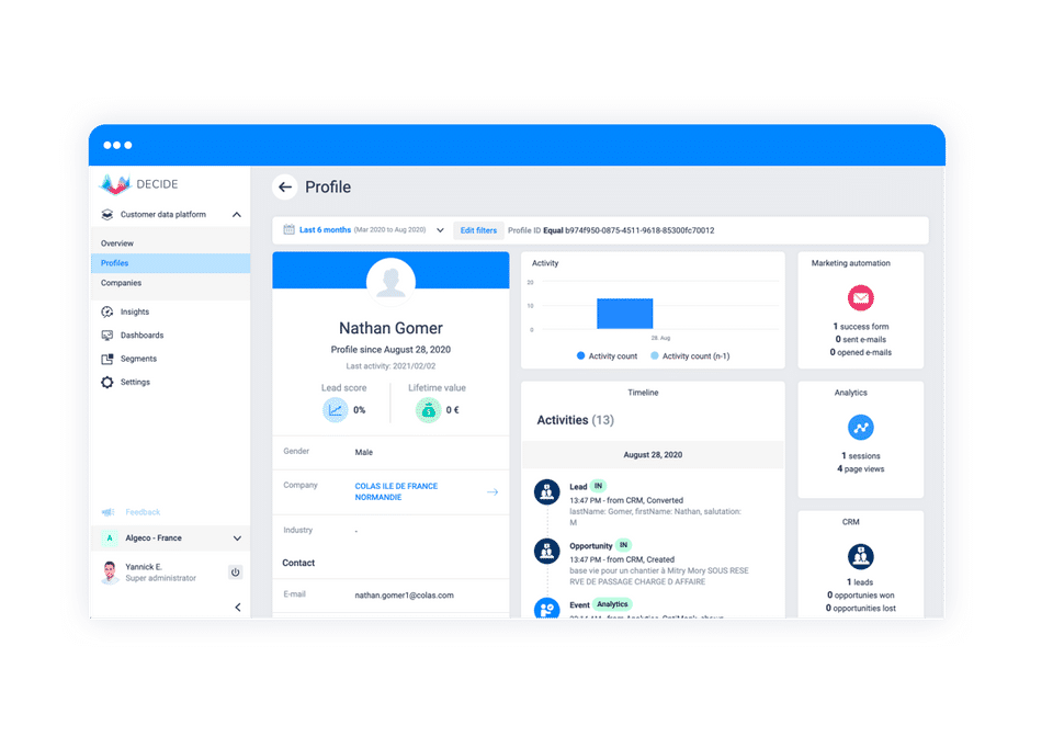 Decide AI is the Customer Data Platform (CDP) used for the below functionalities.