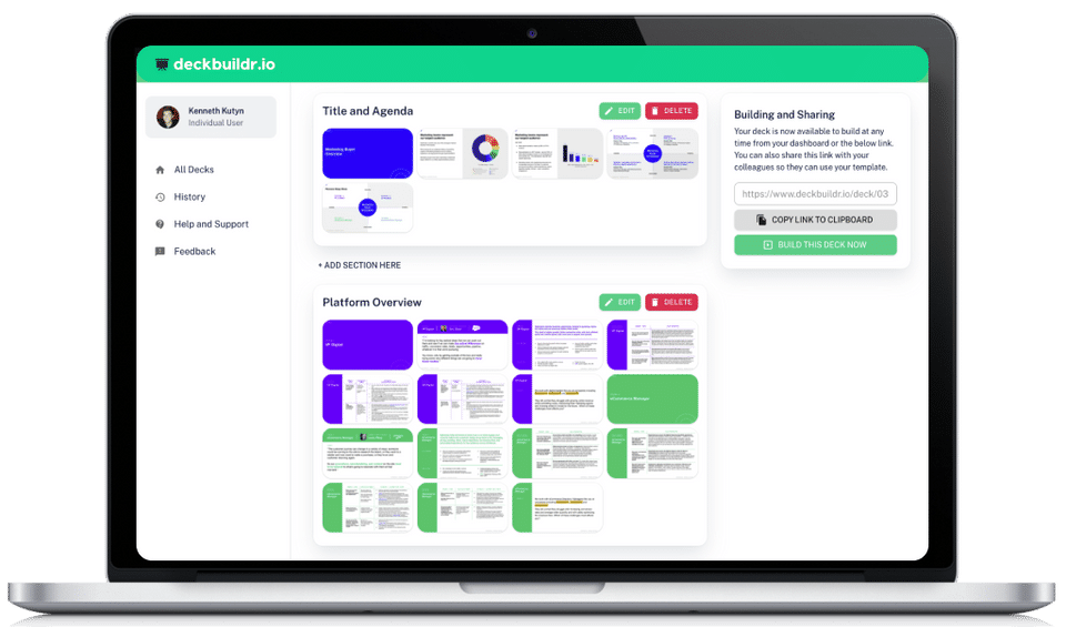 Deckbuildr is the Sales Enablement Software used for the below functionalities.