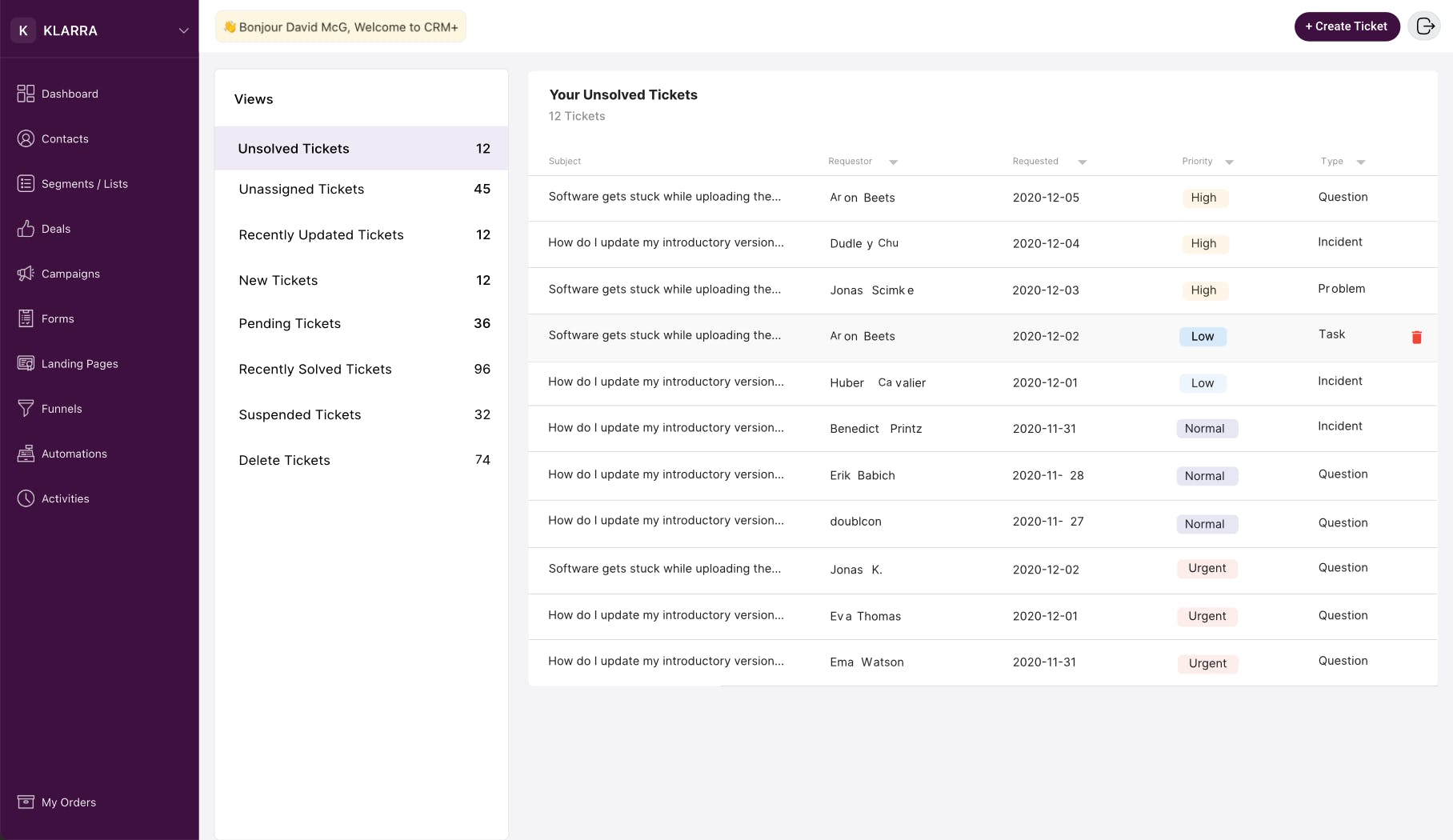 - Sales Pipeline Tracking – Visualize and manage sales deals at different stages.