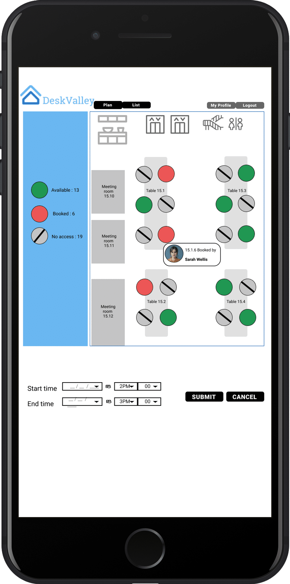 - Customised desk plan set up (including different table types)