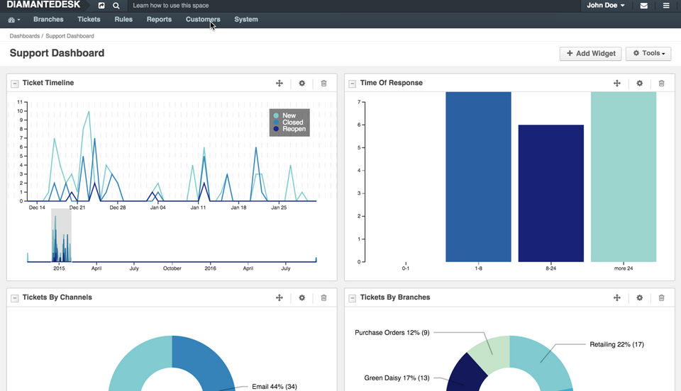 DiamanteDesk is the Help Desk Software used for the below functionalities.