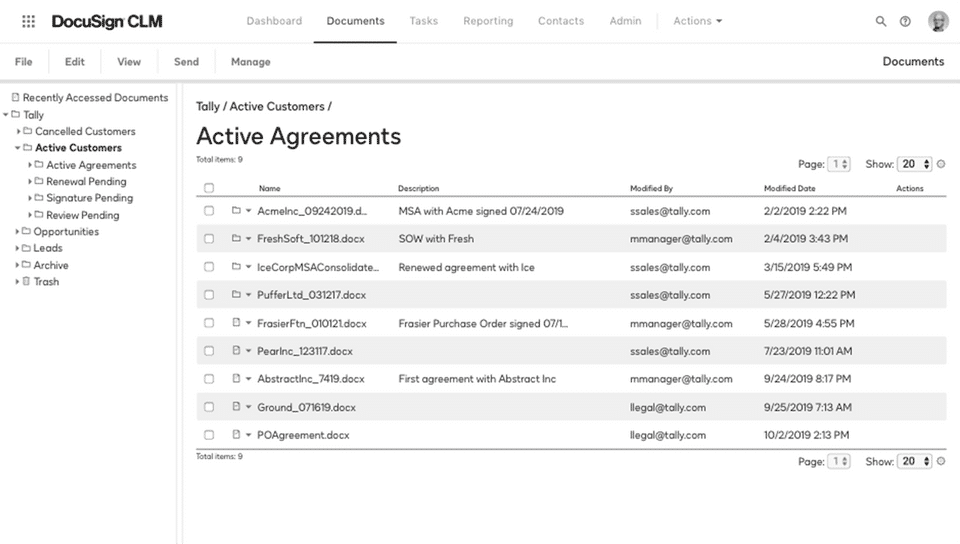DocuSign CLM is the Contract Management Software used for the below functionalities.