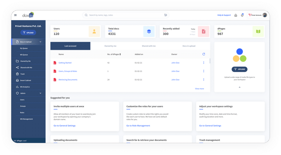 dox2U is the Document Management Software used for the below functionalities.
