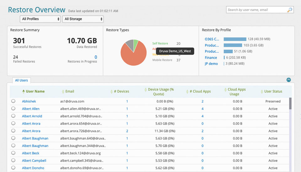 Druva inSync is the Backup Software used for the below functionalities.
