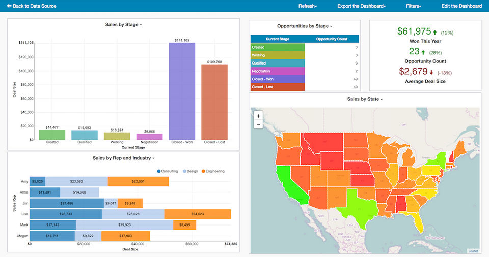 We are using Highrise,one of the most effective, but demanding CRM application. I must admit it was a challenge to discover an inherent reporting tool to integrate with it, so Easy Insight was a blessing for us. We generate incredibly accurate reports, able to showcase both drops and improvement at the glance of an eye.