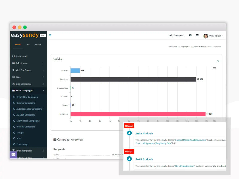 We are using EasySendy Pro from last one year and we totally satisfied with this product. EasySendy pro is a front for promotional emails in which we have to set up an smtp server like amazon ses, Dyn etc. By using Easysendy Pro we can reduce our overall email marketing budget with all the best industry standard features and with great email marketing management with this tool.