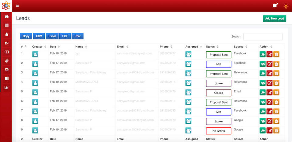 Eezyy CRM is the CRM Software used for the below functionalities.