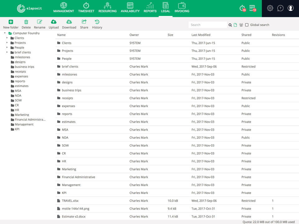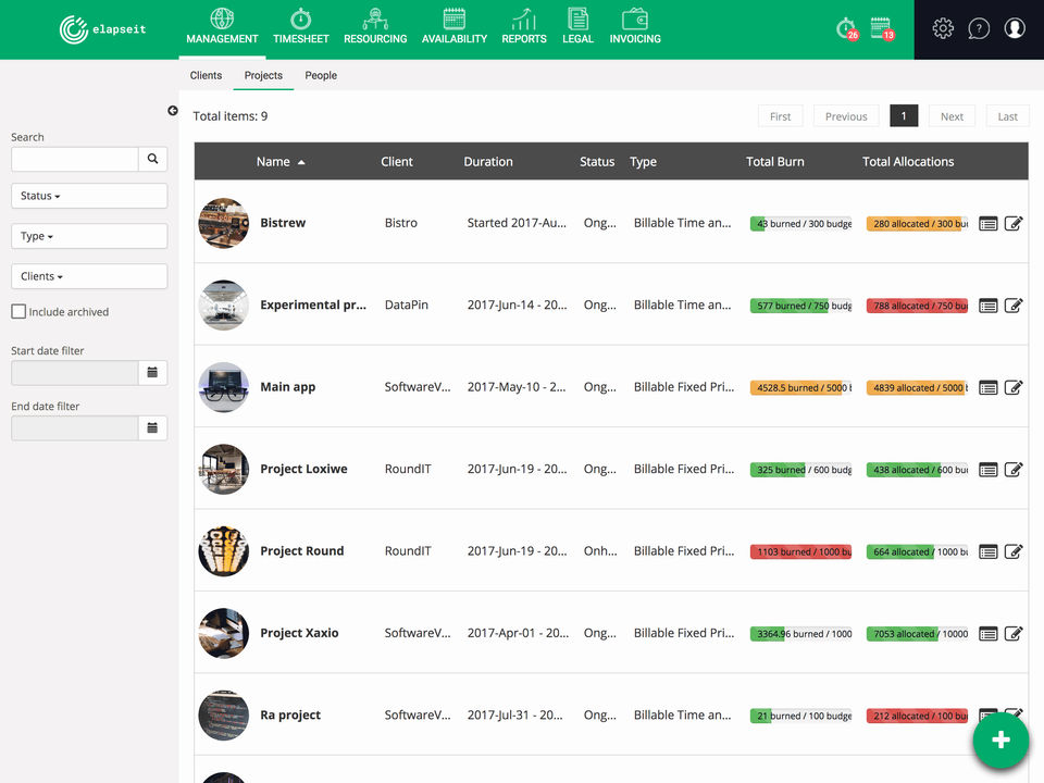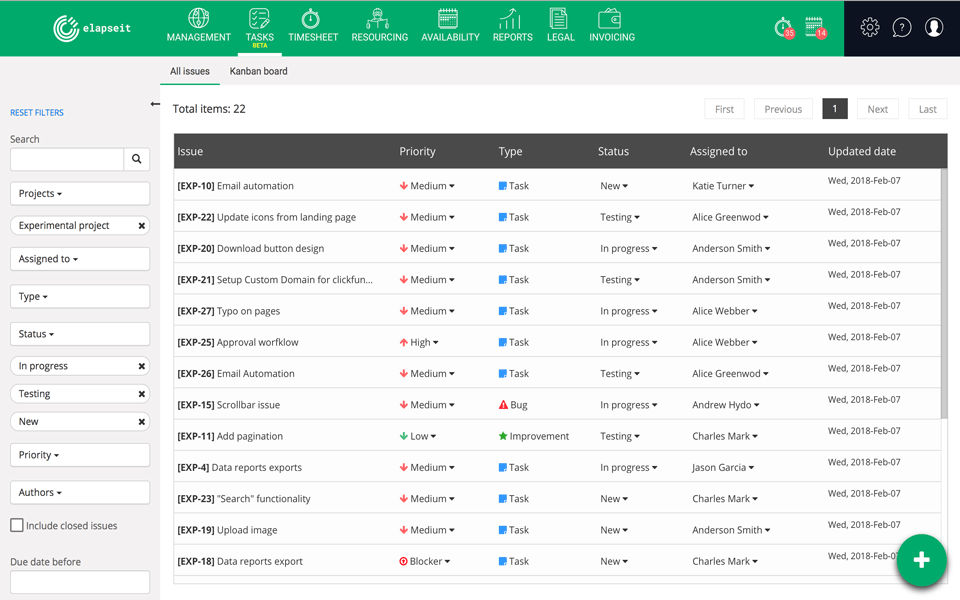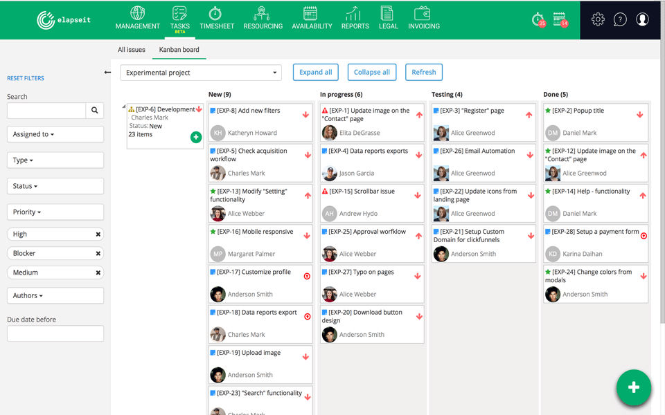 I used elapseit mostly for project management, its got a ton of other features for tracking time, invoicing, revenue forecasting and so much more, its a tool that has it all.