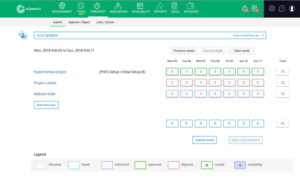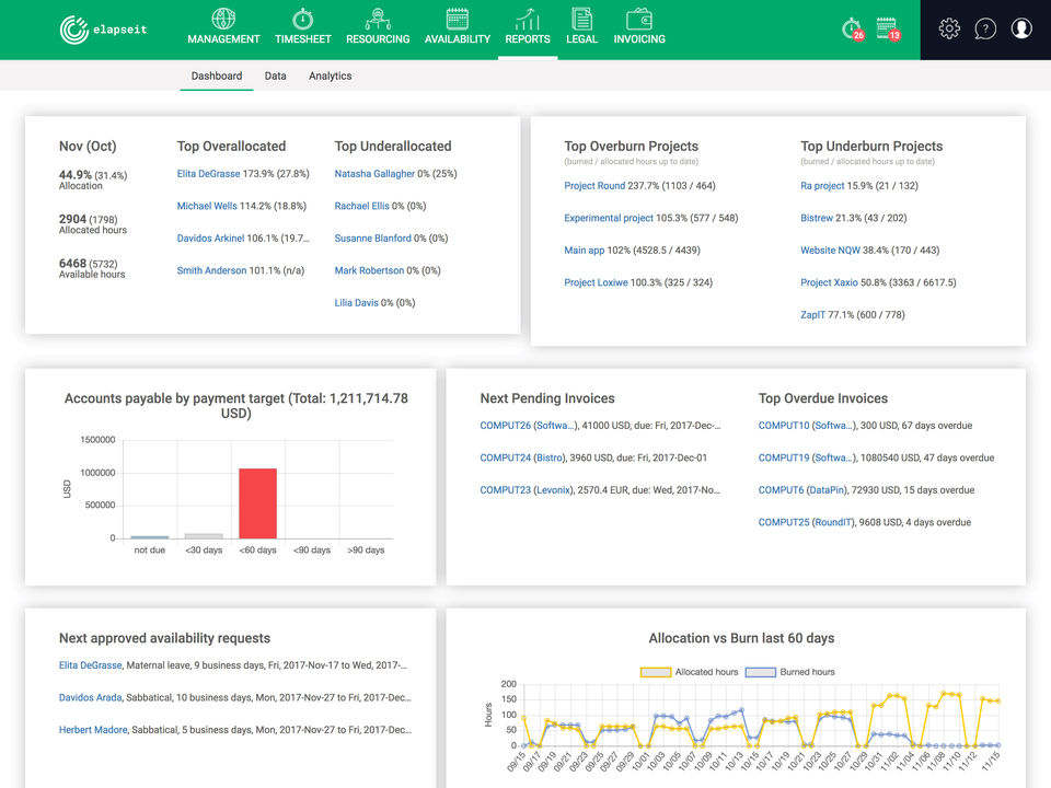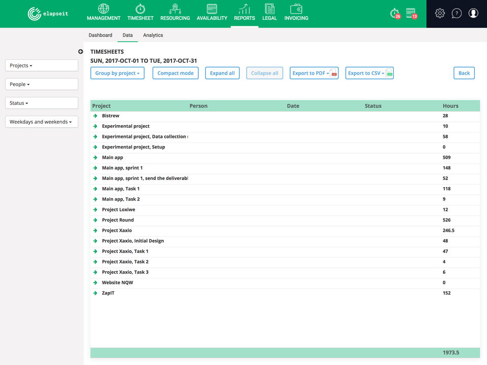- Reports (timesheets