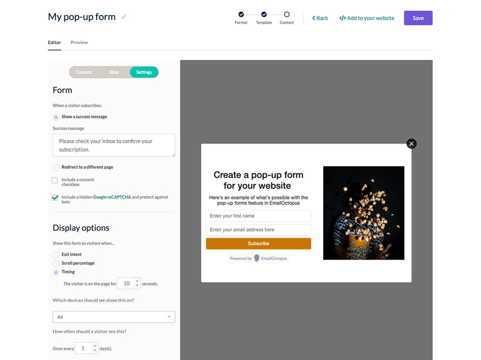 EmailOctopus is the Email Marketing Software used for the below functionalities.