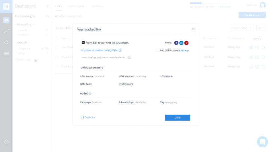 - Unlimited retargeting pixels ID