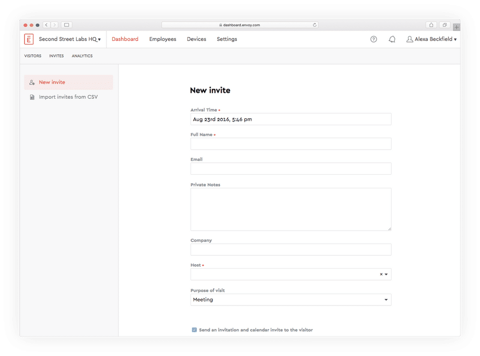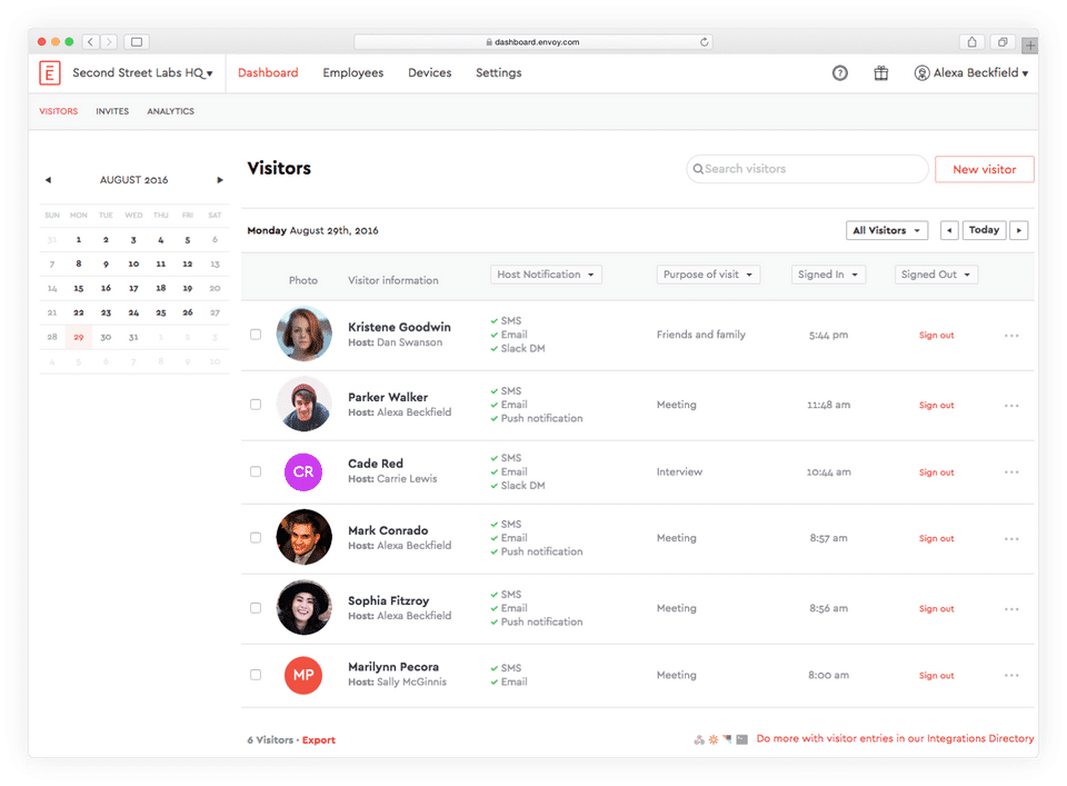 - Company Name: Envoy Visitors
