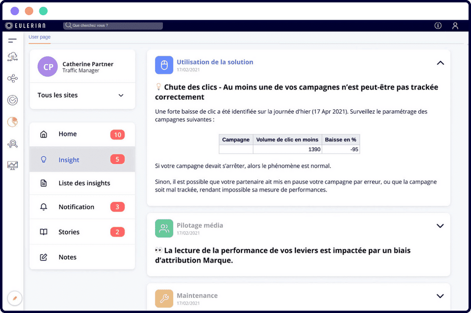 Eulerian is the Customer Data Platform (CDP) used for the below functionalities.