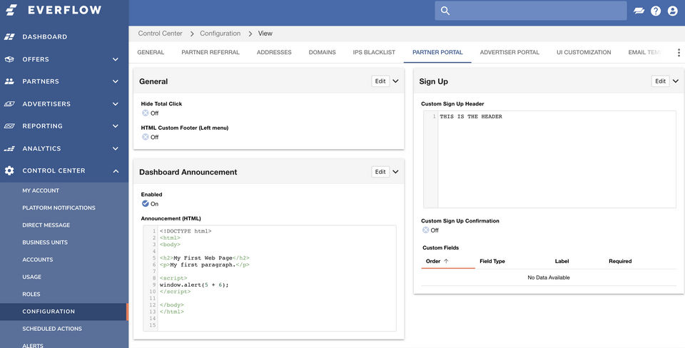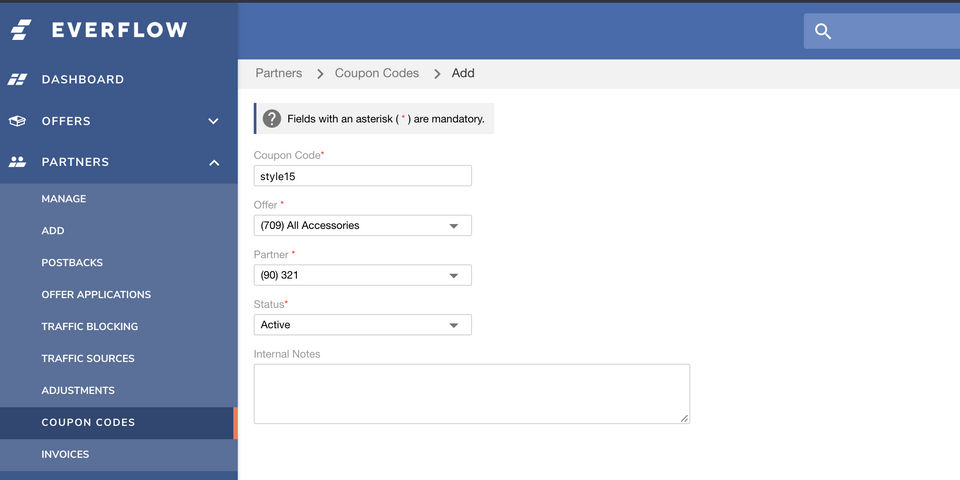 Everflow is the Affiliate Marketing Software used for the below functionalities.
