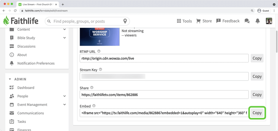 Faithlife Live Stream is the Live Streaming Software & Platform used for the below functionalities.