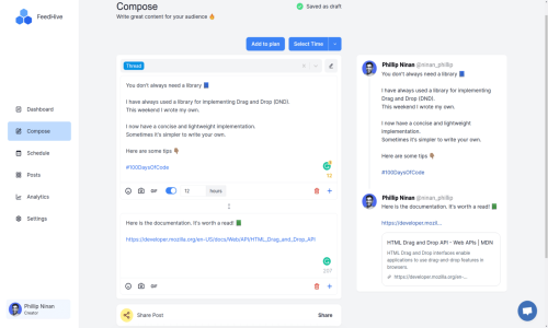 Many FeedHive Reviews highlight its time-saving features, intelligent automation, and ease of use. Users consistently praise the platform for transforming how they manage social media, making content scheduling not just easier—but smarter.