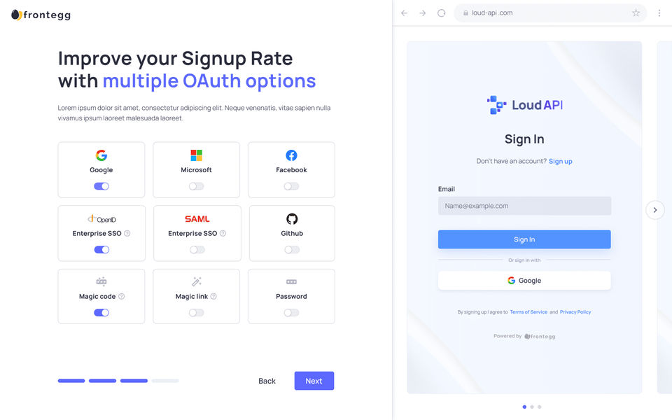 In addition, FrontEgg supports the hybrid mode, giving us the flexibility to use FrontEgg without being afraid of dealing with on-prem issues with Enterprise clients.