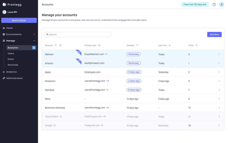 Frontegg provides all the features we need for securing our platform and gives our customers tools to fine tune it based on their security requirements. JWT based authentication with multitenant support, including tenant/user/roles/perms/MFA management, flexible security configuration, audit logs to mention just a few features we appreciate.