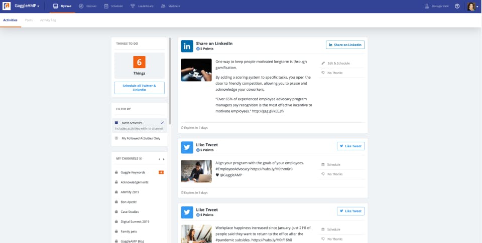 GaggleAMP is the Employee Advocacy Platform used for the below functionalities.