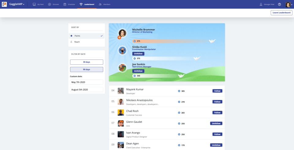 Whether you're looking to boost brand reach, promote internal culture, or increase employee engagement, GaggleAMP provides the structure and tools necessary for successful employee advocacy. Its intuitive interface and data-driven design make it a top choice among enterprise and mid-market companies alike.