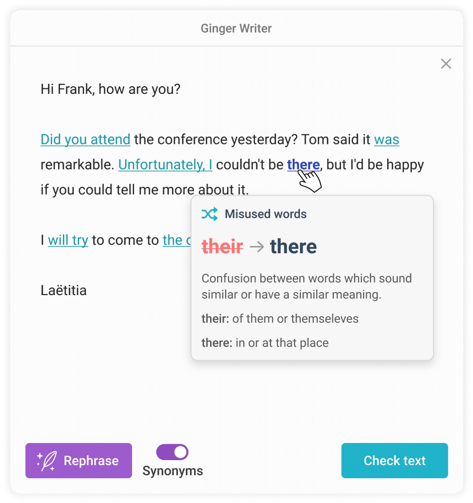 Ginger is the AI Writing Assistant Software used for the below functionalities.