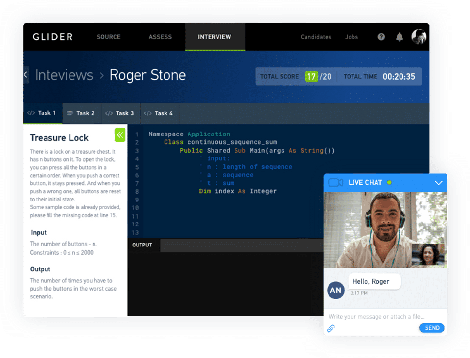 - Auto-scored coding tasks can be given by non-technical interviewer