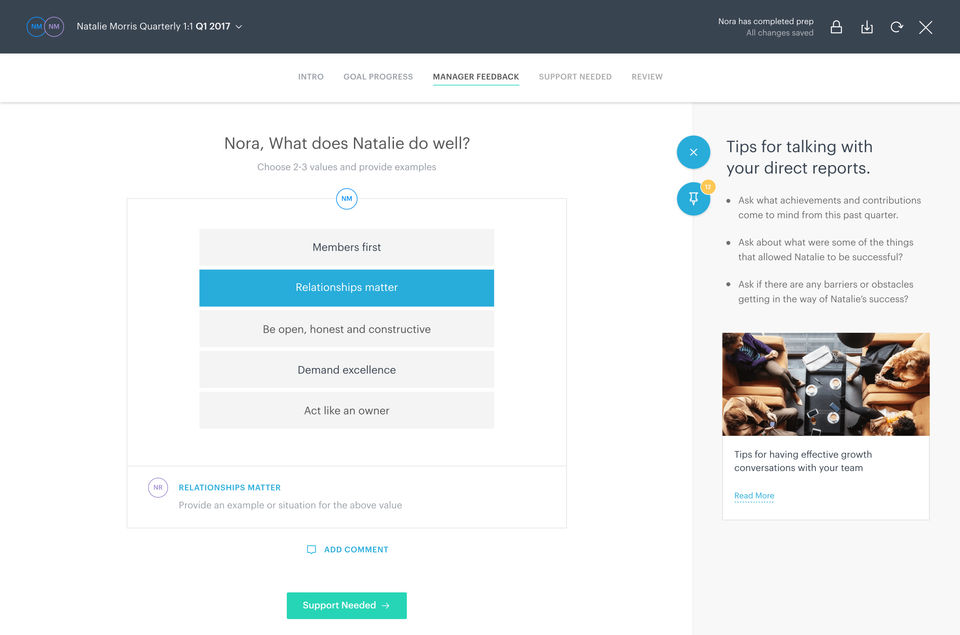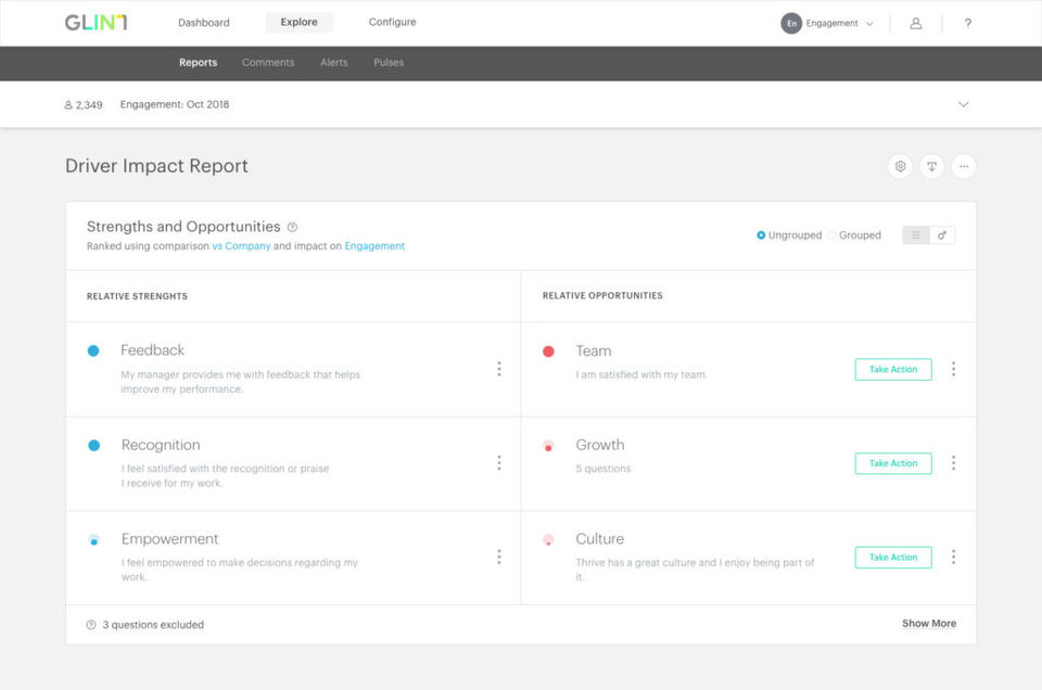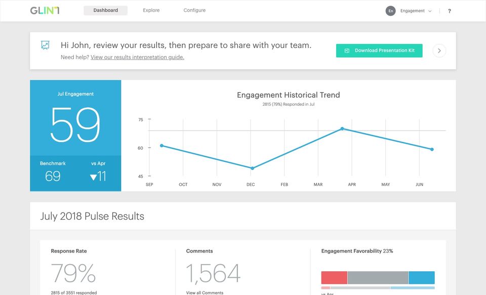 The format is simple but effective. I also like the tracker at the top to show progress. On the back end, the data is super helpful for gauging employee engagement, program effectiveness and progress from previous surveys we have given our employees.