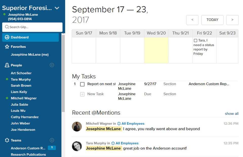 Glip has improved the way our team communicate, we use it to manage projects and keep our company much more organized. This tool has offer us with a place where my team can share daily plans, accomplishments, challenges and long-term goals