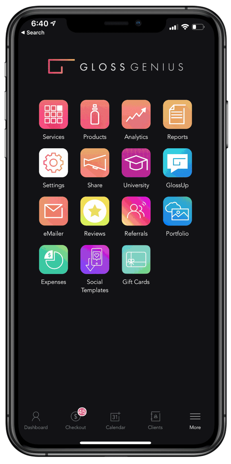 GlossGenius is the Appointment Scheduling Software used for the below functionalities.