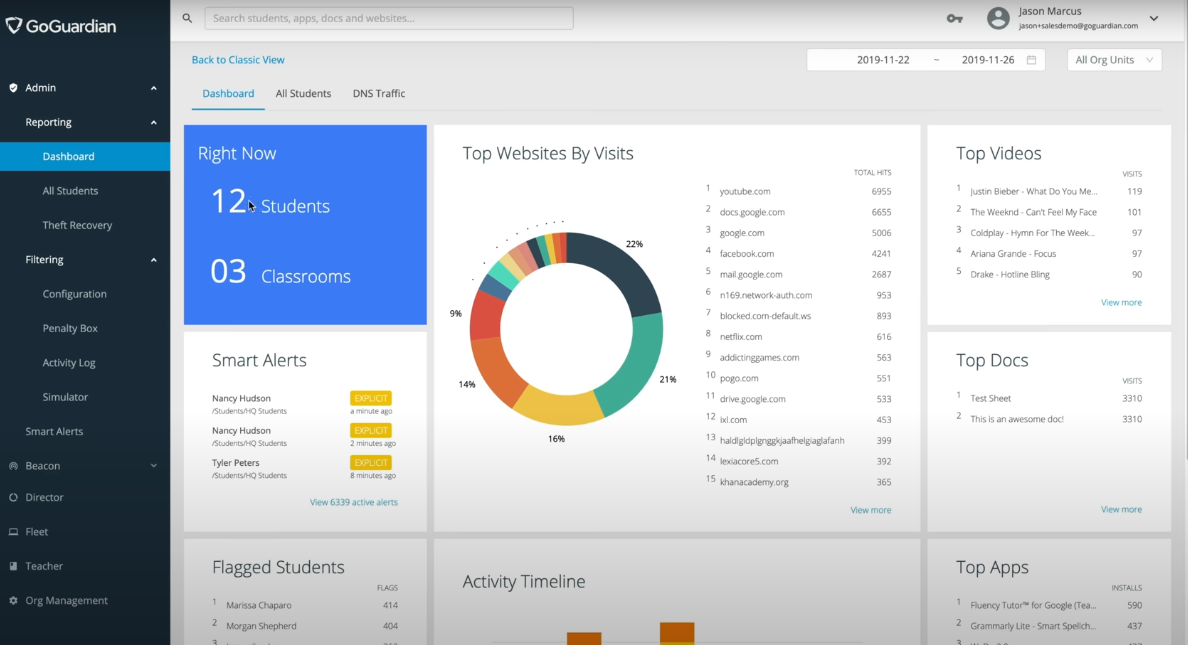 GoGuardian Teacher emphasizes privacy and compliance, offering features aligned with student safety laws such as FERPA. Activity history, session reports, and usage analytics provide administrators with transparency and insights into classroom behavior.