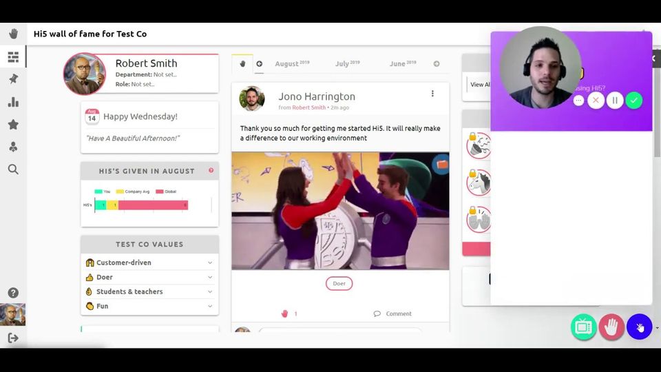 Hi5 is such a positive platform. It improves the overall working environment and creates great relationships with people. Essentially it feels good and productivity certainly has increased as everyone wants to play a part in the bigger picture for the company.