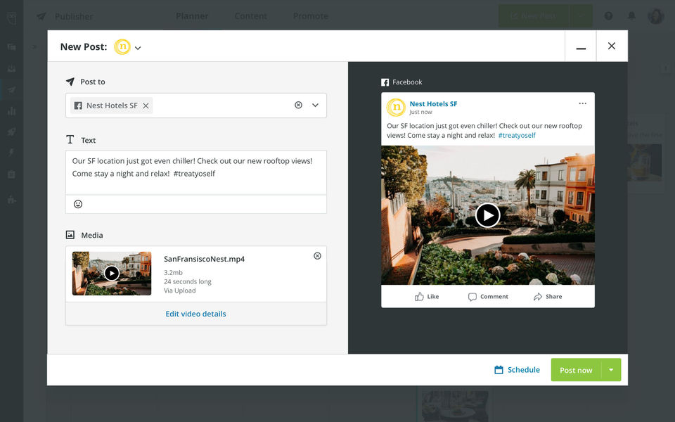 The biggest benefit was that you can schedule posts as FB accounts, pages, and groups.