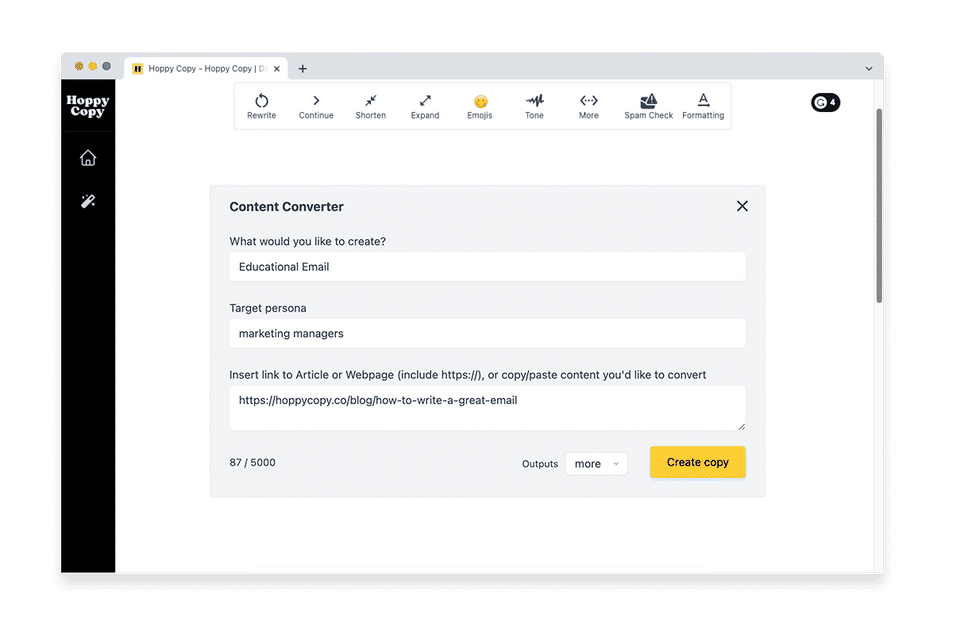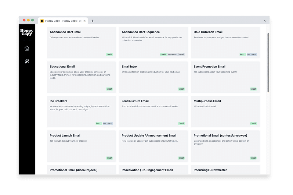 HoppyCopy is the Email Marketing Software used for the below functionalities.