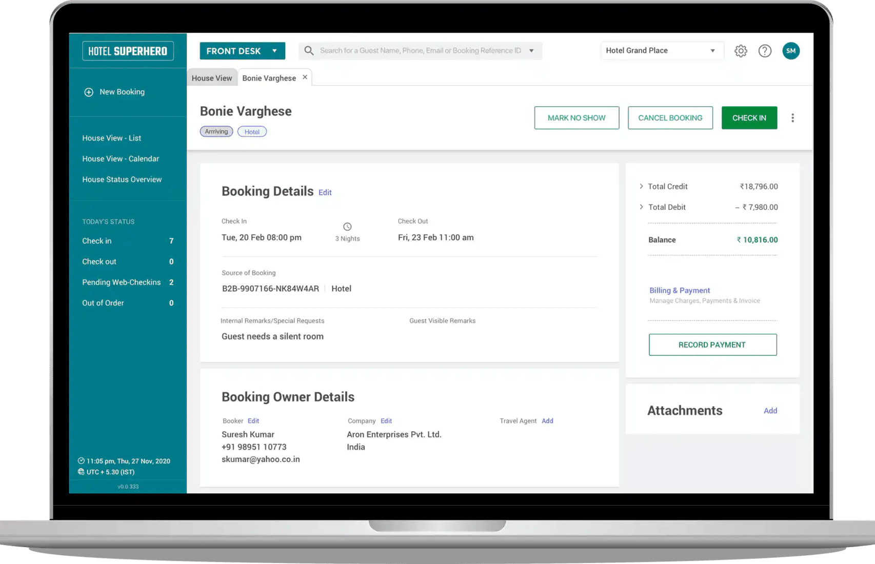 Hotel SuperHero is the Hotel Management Software used for the below functionalities.