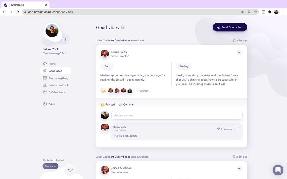 Howamigoing is the Performance Management System used for the below functionalities.