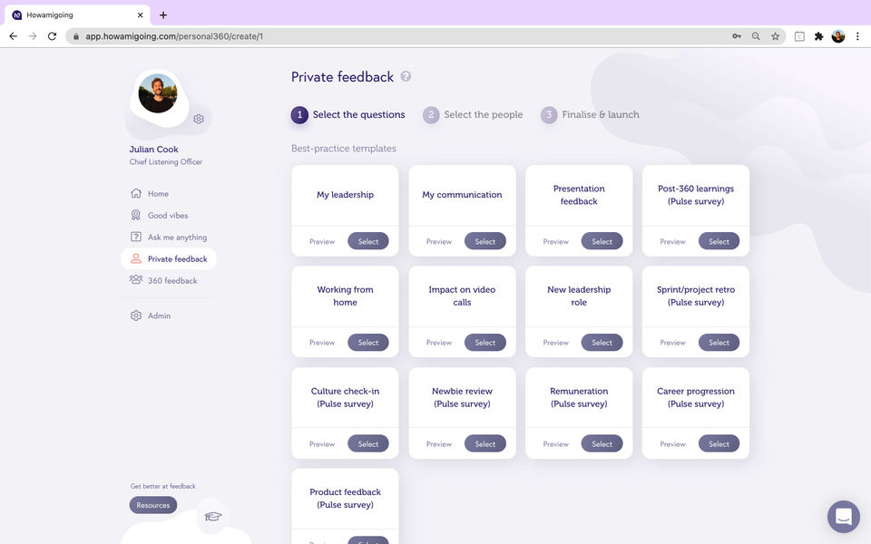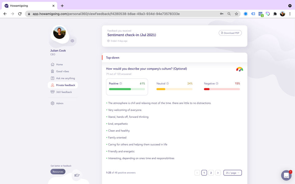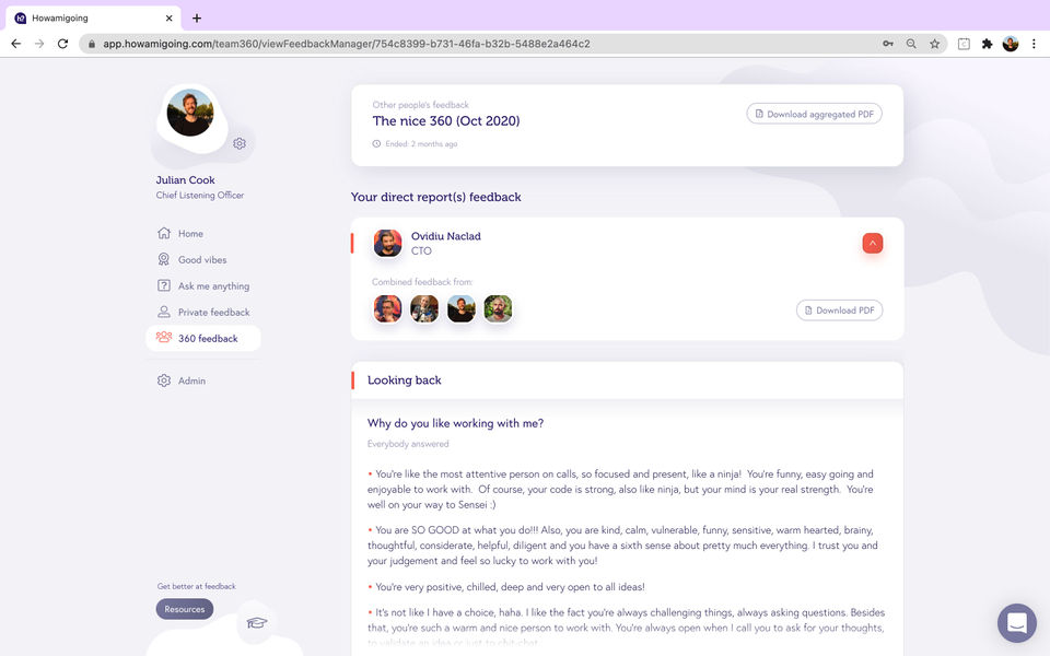- Private feedback