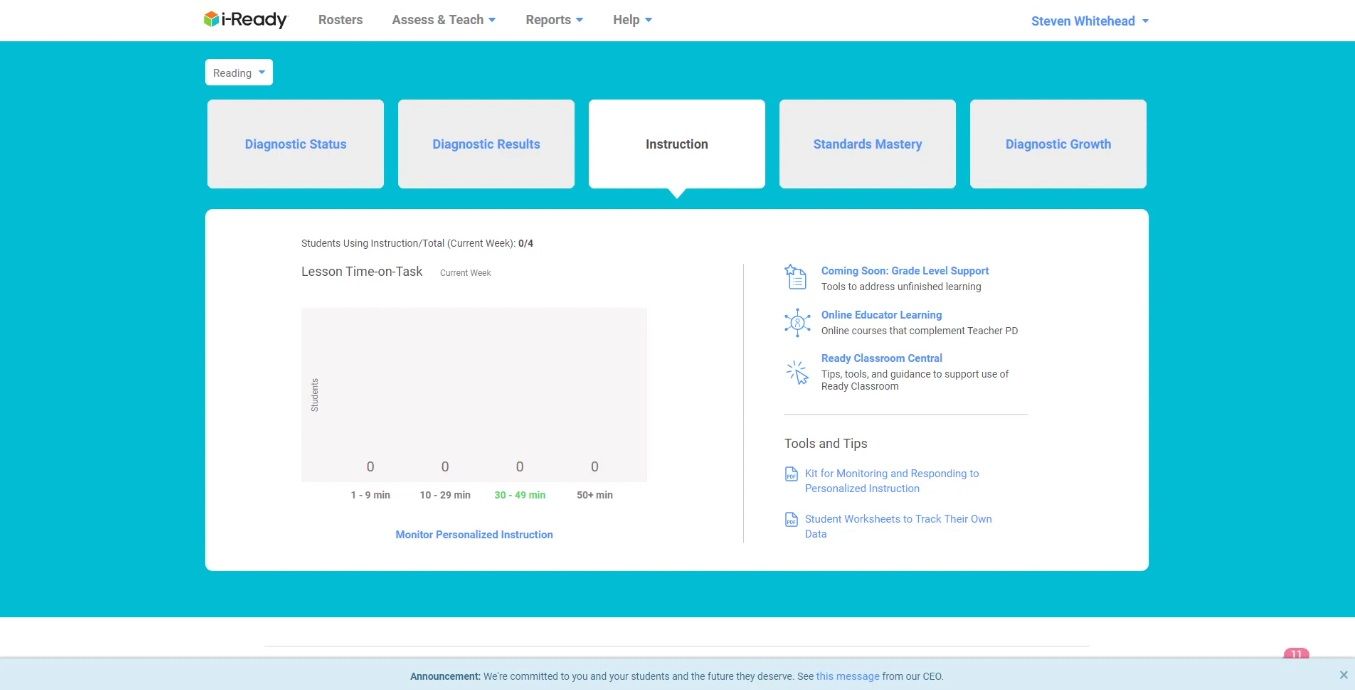 i-Ready is the Learning Management Software used for the below functionalities.