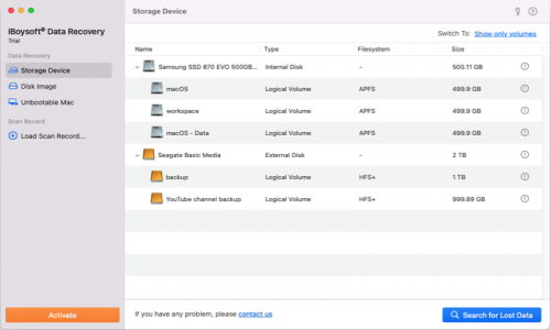 As its name implies, iBoysoft Data Recovery for Mac serves as a professional Mac data recovery program capable of retrieving deleted or lost files (photos, audio files, videos, Office files, emails, etc.) on Mac. Armed with advanced technology and algorithms, it helps Mac users deal with different types of data loss scenarios, including accidental deletion, mistaken formatting, malware attacks, system crashes, disk corruption, and so forth. To make it more straightforward, iBoysoft Data Recovery for Mac supports deleted file recovery, formatted drive recovery, virus infection recovery, unbootable Mac data recovery, and corrupted drive recovery, to name a few. It's really a go-to solution that can be used to retrieve data from HDDs, SSDs, SD cards, memory sticks, USB flash drives, CF cards, and more on Intel-based, T2-secured, and even Apple silicon Macs.